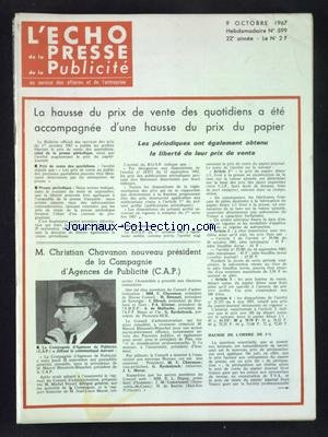 Read ECHO DE LA PRESSE ET DE LA PUBLICITE (L') [No 599] du 09/10/1967 PDF